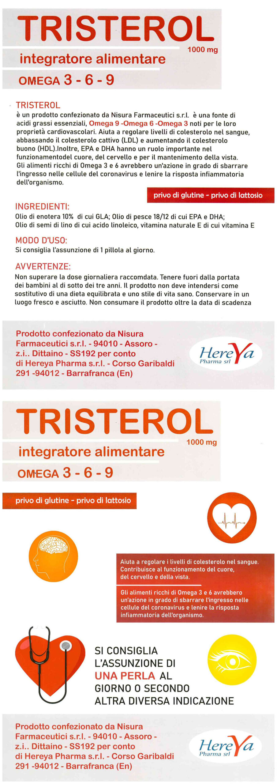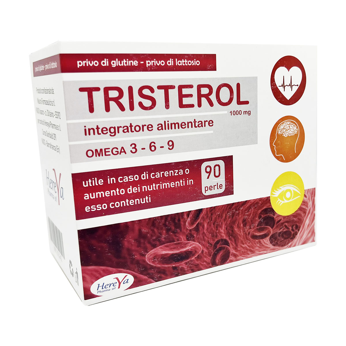TRISTEROL 90 Perle è una fonte di acidi grassi essenziali, Omega 9 – Omega 6 – Omega 3 noti per le loro proprietà cardiovascolari.